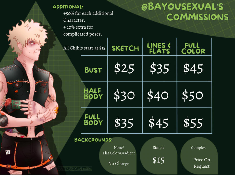 Please Include your name/contact, description of your request, and time frame you wish to receive it in. This information is vital for determining if I can accept your commission! Thank you!I require half payment up front after your request has been accepted.If comms are closed you may still submit a request, but it will be added to a waitlist if accepted. If waitlisted I will check back with you before opening slots in my next round of comms.